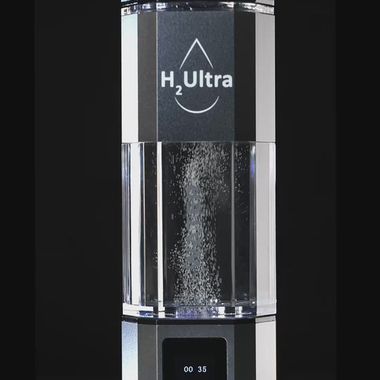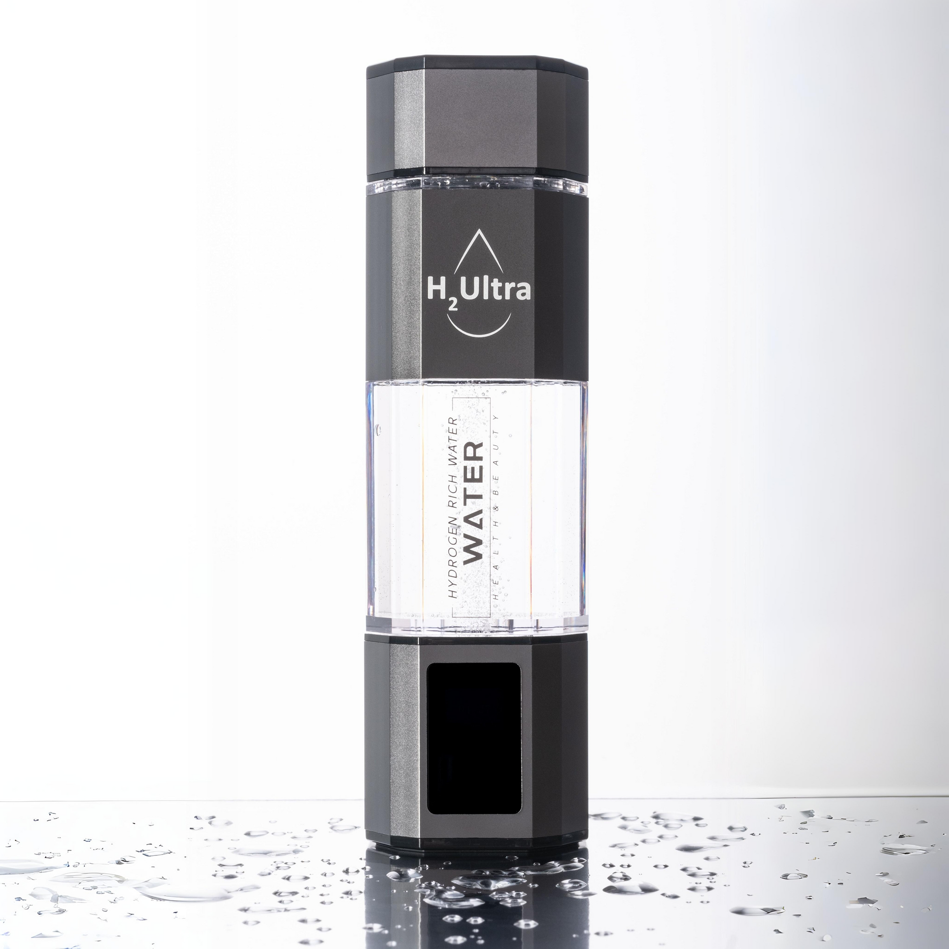 Our bottles contain a built-in lithium battery that powers an electrolysis process. When activated, the electrolysis generates molecular hydrogen, which dissolves into the water, creating hydrogen-rich water.
